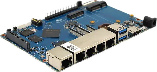 [WiFi Router Development Board]The Banana Pi R2 PRO is a router based development board, With MediaTek MTK MT7531BE ,Mali-G52 1-Core-2EE GPU and 2G LDDR4 SDRAM,It has 4 Gigabit LAN ports, 1 Gigabit WAN, AC wifi AP function, Highly integrated 802.11n and Bluetooth 5.0 system-on-chip