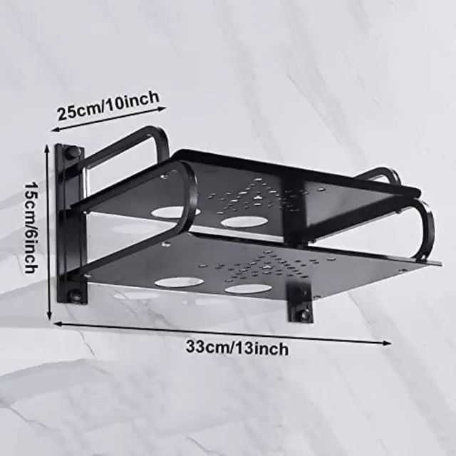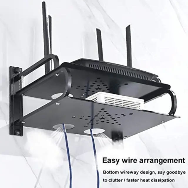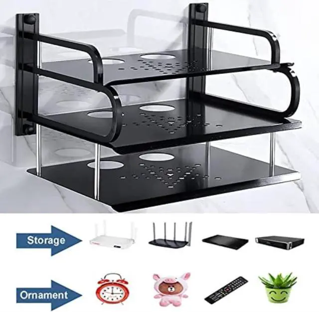 Two Ways to InstallThe router storage rack can be drilled to install or placed on a table for use. You can choose a suitable installation method according to the situation to make the storage rack more secure.
