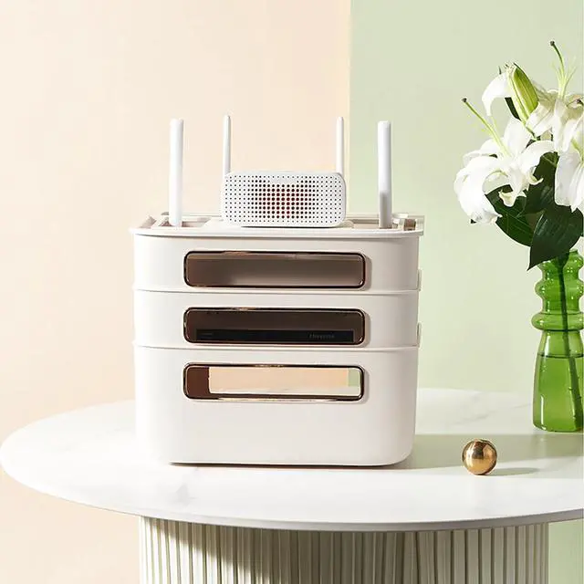 Neat Desktop Solution: The router storage box helps maintain a tidy and orderly desktop with its multiple slots for cables and devices. It's an excellent choice for use in both home and office environments. This organizer enhances functionality while keeping your space no clutter