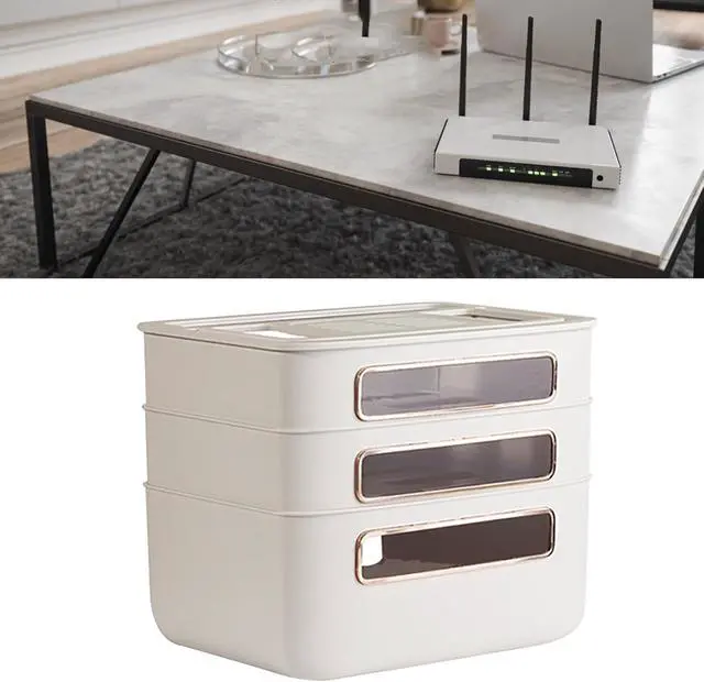 Compact and Practical: This desktop router storage box is ideal for routers, power strips, and set top boxes. It combines beauty with practicality, allowing you to save space while enhancing the aesthetics of your area. ideal for keeping your devices organized and your workspace tidy