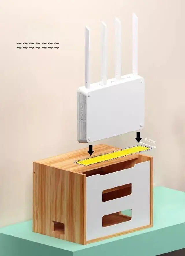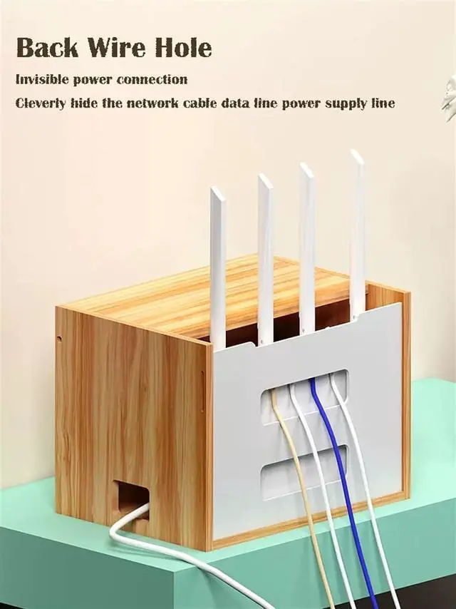 Environmental Protection MaterialThis wireless router organizer is made of thickened wood panel, which has a glossy surface, uniform color, and detailed texture.