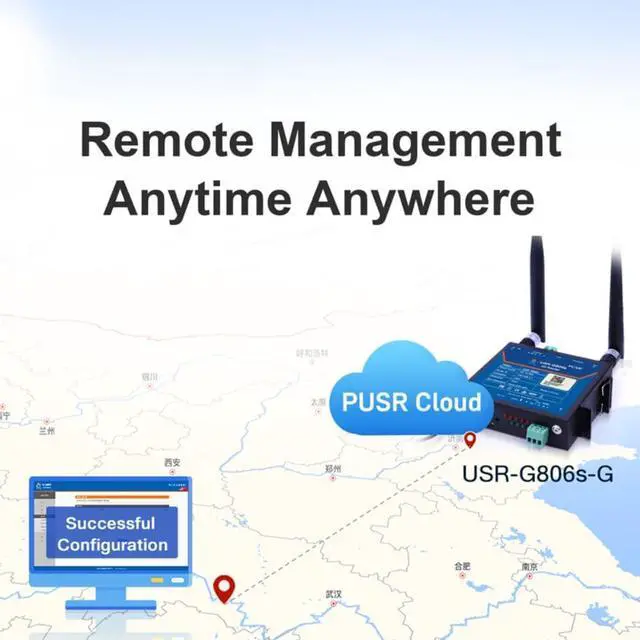With GNSS Location, Monitoring Your Assets USR-G806s-G can report the location information in RMC and GGA formats to the manned cloud platform for track display, or to the user-defined TCP/UDP server for location and tracking.