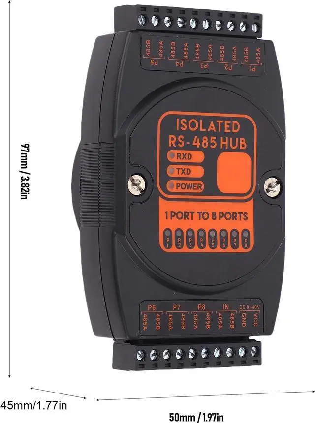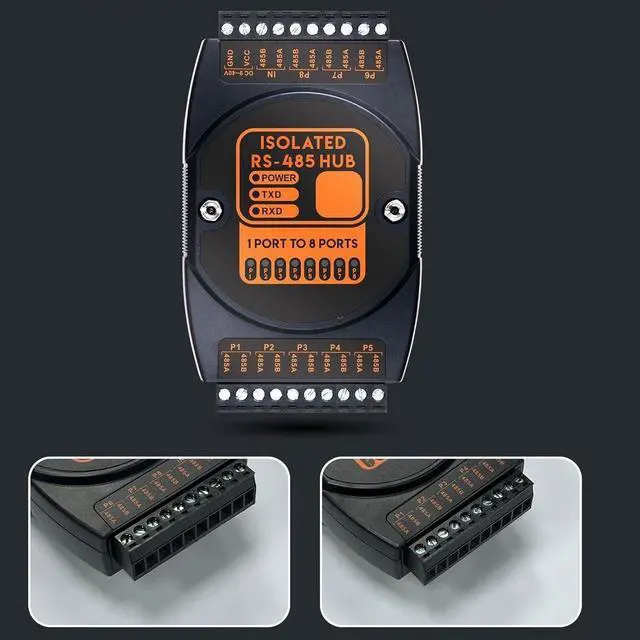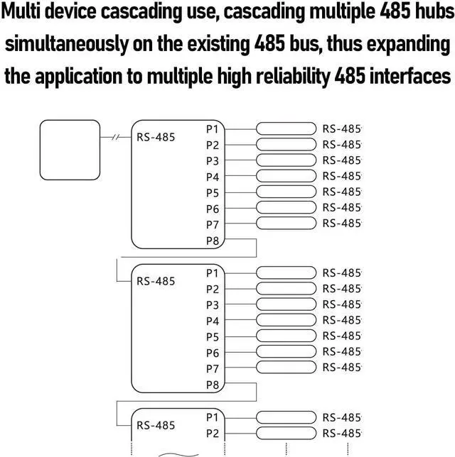Expandability: The 485 hub offers 1 channel 485 input and 8 channel 485 output, with each channel being isolated and supporting up to 128 nodes. This allows for easy expansion and connectivity within a network.