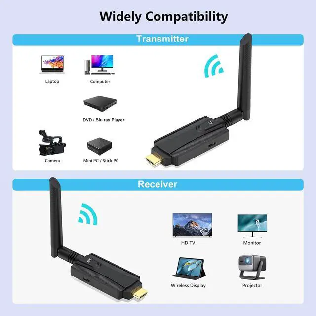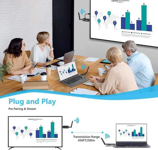 [Ultra Hd Streaming] This advanced wireless extender delivers crystal clear video and sound up to 200 meters with interference. experience seamless 1080p hd quality at 60hz with ultra low 0.05 second latency for perfect synchronization between audio and video. perfect for professional presentations or immersive movie nights.