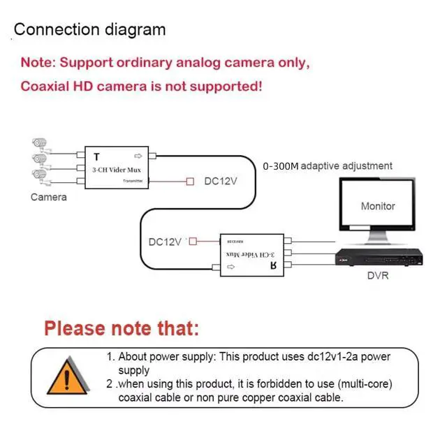 It Can Extend 3 Channel Video Over One Coaxial Cable, Long Distance Transmission Up To 300meters.