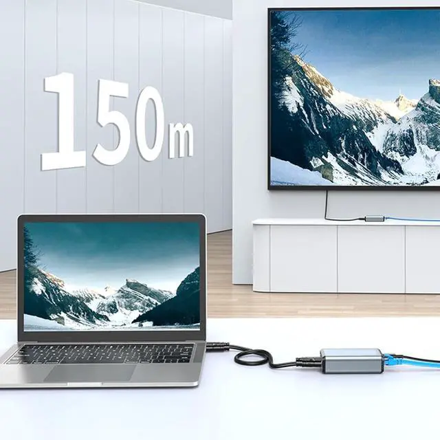 Extend hdtv signals up to 150m over Ethernet cable with not latencys and clear 1200P resolution using this hdtv Extender, for home theaters and professional setups.