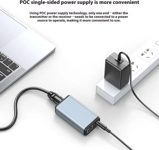 Engineered with POCS (Power over Cable) technology and aluminum alloy construction, this hdtv over Ethernet extender enables single sided power supply while maintaining stable 1080P/1200P video transmission through standard Cat5e/Cat6 cables.