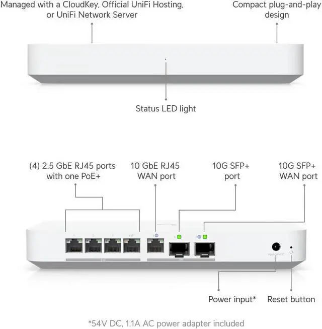 DESKTOP GATEWAY: Ubiquiti Gateway Fiber is a powerful 10G independent gateway with an integrated 4-port 2.5 GbE switch for high-performance networking.