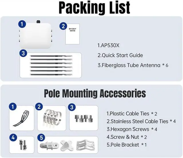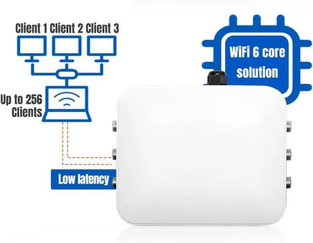 AP530X is an outdoor WiFi6 tri-band AP.The product is based on the powerful Qualcomm wireless core.The product is based on the powerful Qualcomm core, with 27dBm TX power and external antennas.