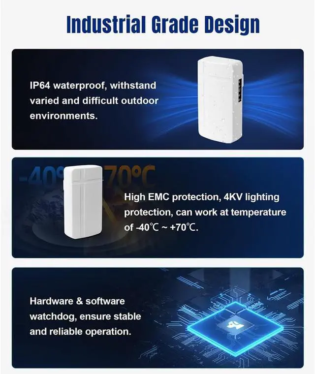 It comes with high gain antenna, the theoretical wireless rate is up to 300Mbps, and the measured coverage distance can reach 300 meters.