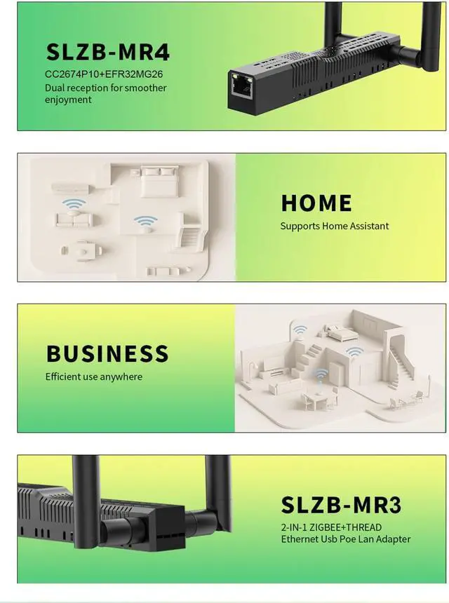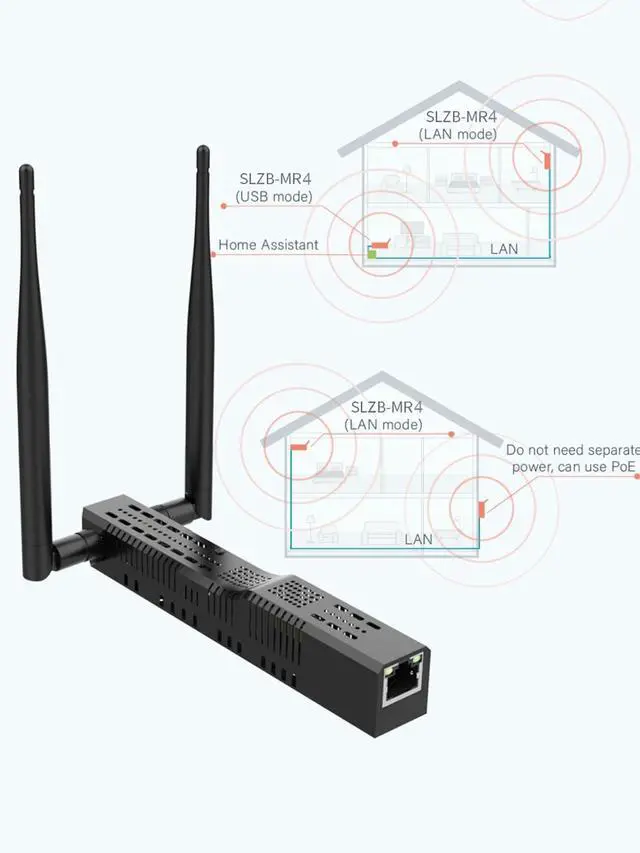 Powerful Chipsdual-antenna Zigbee and Thread coordinator based on the CC2674P10 and EFR32MG26 modules, combining CC2674P10 and EFR32MG26 chips in a single device to deliver full support for both Zigbee and Thread networks. Designed to work seamlessly with Zigbee2MQTT and ZHA