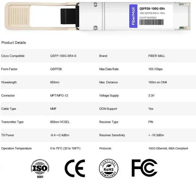 QSFP28 100GCisco 100Gigabit Ethernet, coding as Cisco QSFP-100G-SR4-S