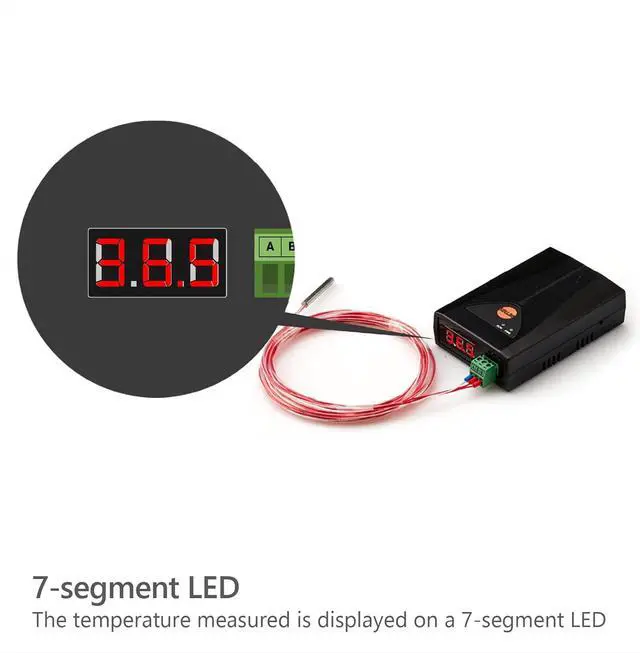 PT100 connection port (support 3-wire PT100 sensor) and a red 3-digit 7-segment LED display