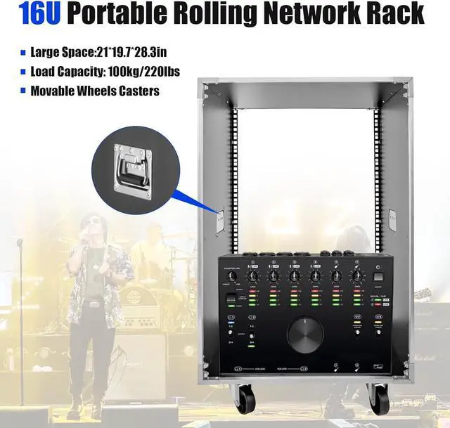 Large Space: The rolling network rack size is 21 * 19.7 * 28.3 inches, which can accommodate large computer chassis and mixer. The top platform provides additional placement space for computers, mice, remotes, and other devices. The 16U portable network rack has a strong bearing capacity, which can bear up to 220 pounds. So it can easily bear many heavyweight machines.