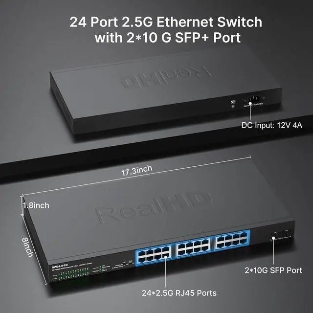 Easy UpgradeWorks with your existing Cat5e, Cat6, or Cat 6a cables, saving you the hassle of running new cables to support the higher speeds. This 24 Port Ethernet Switch 2.5G is worth your while!