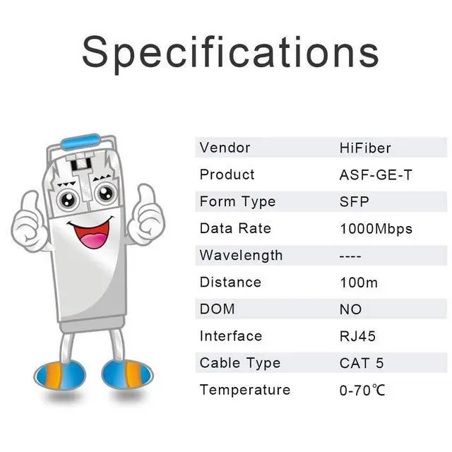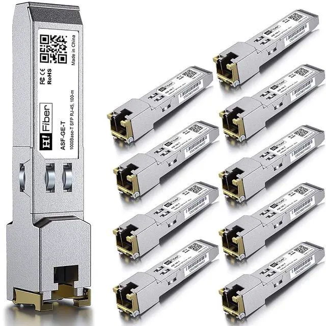 1000Base-T SFP: Gigabit SFP to RJ45 Copper Modules support 1.25 Gbps data rate, with RJ45 connectors for Cat5e or better cable; It extends your Ethernet network up to 100 m (328 ft), providing reliable, high-speed data transmission; 10 pack