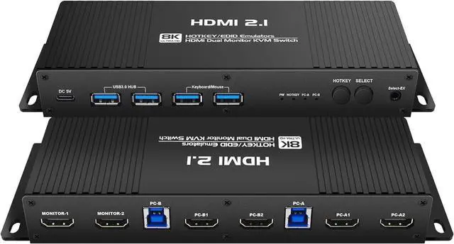 hdmi kvm switch 2 monitors 2 computers edid 4k 144hz hotkey switching Extended display