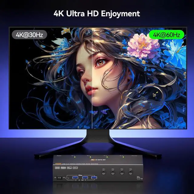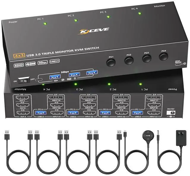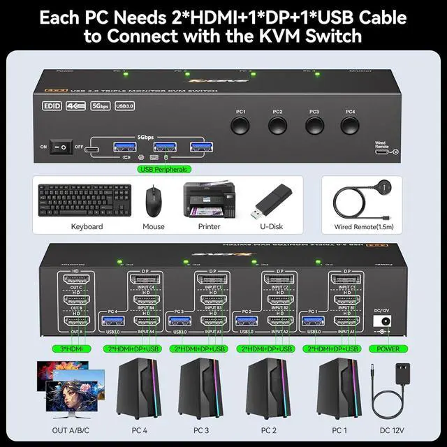A set of wired/wireless keyboard mouse controls 4 computers, sharing 3 monitors, suitable for users with Multiple computers and monitors, supporting Mirror mode and extended Mode, helping you balance work and play.