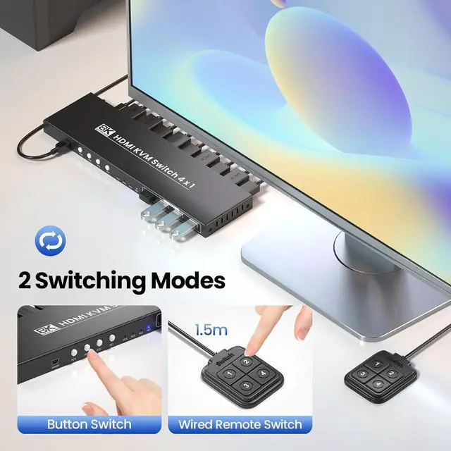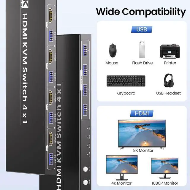 Whether youre a video editor juggling work PCs and a gaming rig, a remote worker balancing personal and professional devices, or a gamer switching between consoles and a PCthis HDMI KVM Switch 1 monitor 4 computers delivers the speed, clarity, and convenience you need.