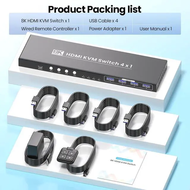 Whether you're a professional looking to streamline your workspace or a gamer seeking seamless transitions between systems, the Ultra HD 8K HDMI KVM Switch is the solution. Simplify your setup, enhance your productivity, and enjoy unparalleled visual clarity with this KVM switch.