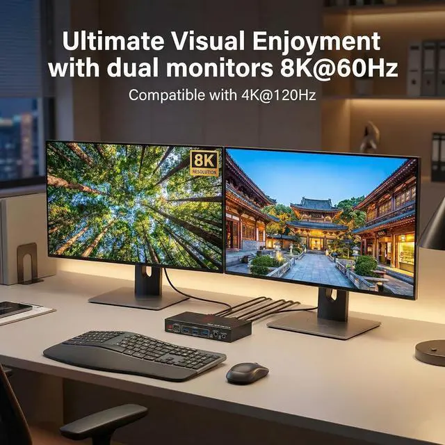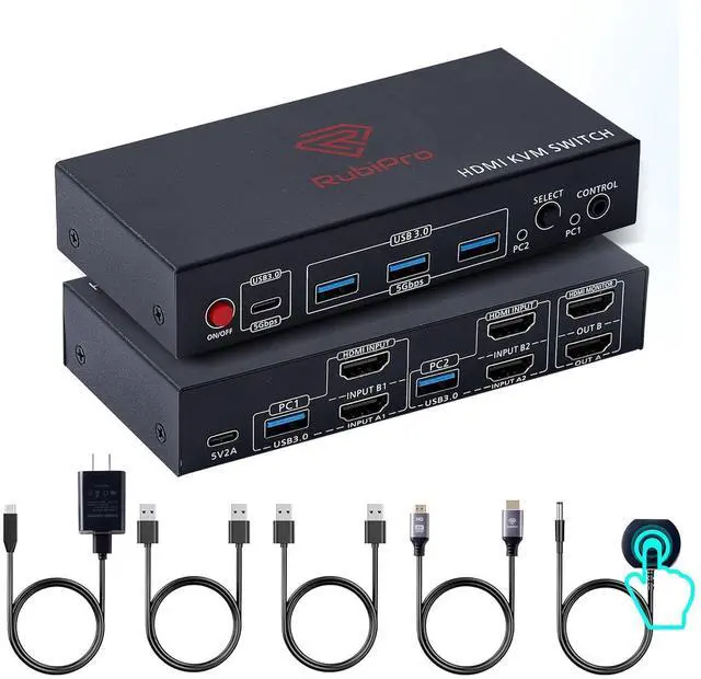 Take control of your digital environment with the RubiPro 8K HDMI KVM Switch. Effortlessly manage two computers using a single keyboard, mouse, and dual-monitor setup. Engineered for high-output professionals, this advanced switch integrates four USB 3.0 ports to ensure lightning-fast data transfers while maintaining crisp, ultra-clear visuals. Streamline your multitasking and reclaim your desk space.