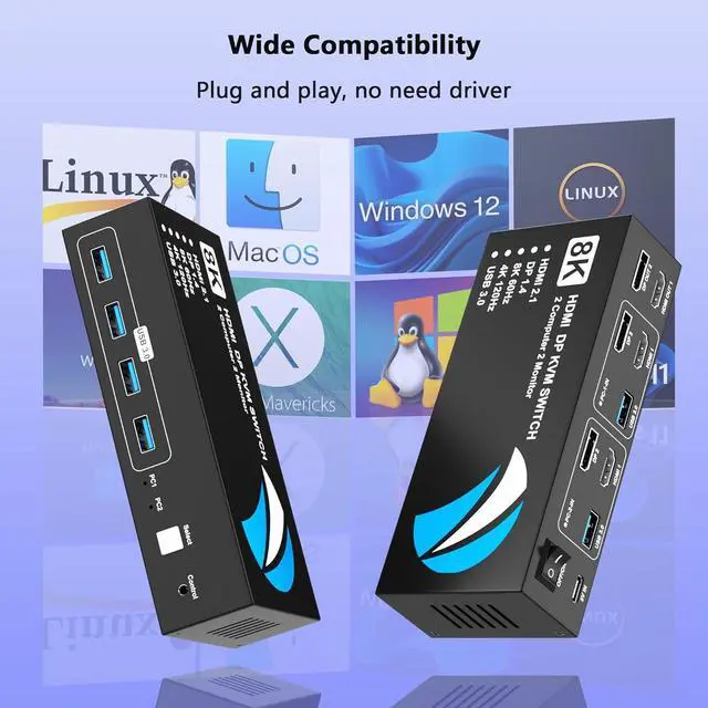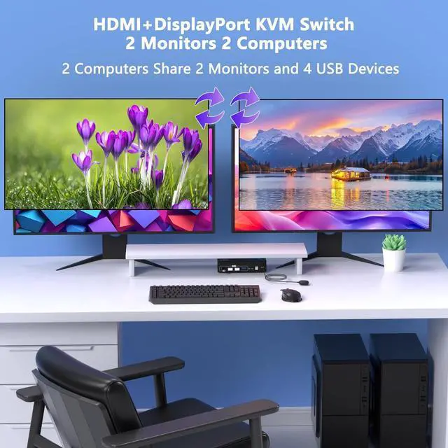 8K@60Hz HDMIDisplayPort KVM Switch 2 Monitors 2 Computers