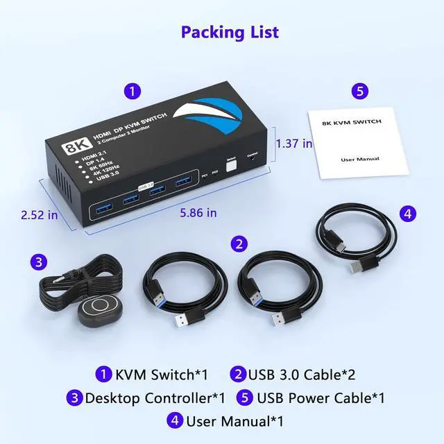 1Switching Between Two PCs2Supports SST/MST modes14 High-Speed USB3.0 Ports2Two Switching Modes3Multi-OS Compatibility4Packaging Contents