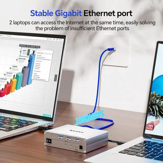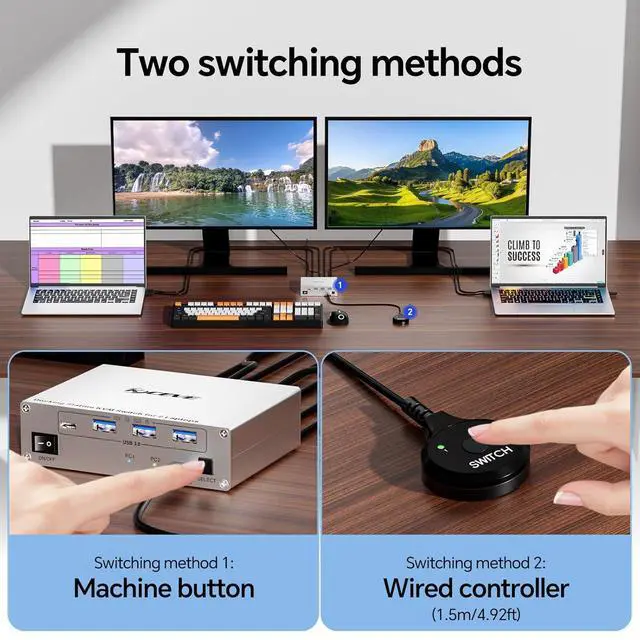 KCEVE 15 IN 1 USB C Docking Station KVM Switch for Two Laptop Dual Monitor Dual full-function USB C (MST) ports designed for personal and work laptops Provides Gigabit Ethernet and 40W PD charging for 2 laptops Use 100W PD charger Two Switching Methods Extended screen mode and suitable USB-C ports