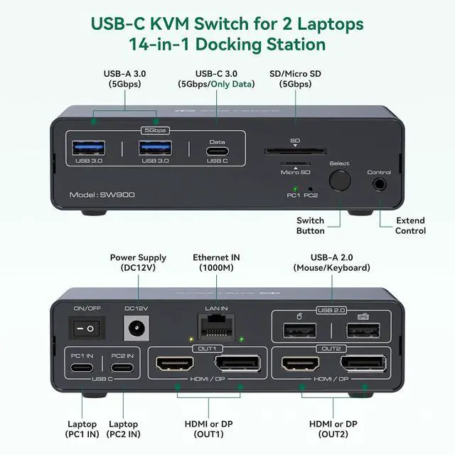 Thunderbolt 4 kvm Switch Docking Station for 2 Monitors 2 laptops or Macbooks CMSTEDCD Thunderbolt 4 kvm Switch Docking Station USB not working