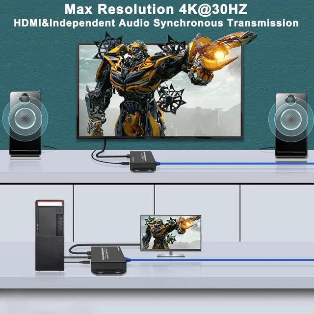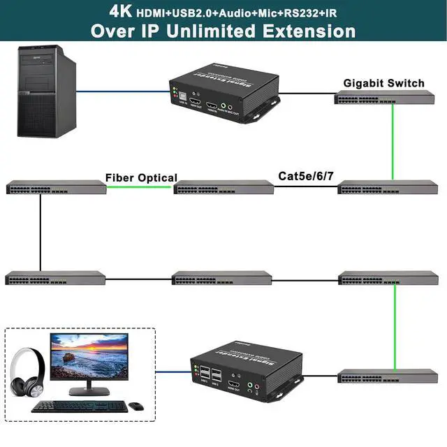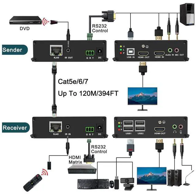 150 m Ultra-Long 4K×2K@30 Hz Transmission (4K KVM Extender): Uses an advanced video-processing chipset to extend uncompressed, near zero latency 4K×2K@30 Hz over a single Cat6 cable up to 150 mideal for digital signage, remote monitoring, and UHD video conferencing with an enterprise-grade KVM over Ethernet solution