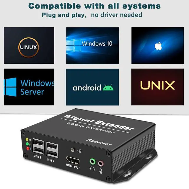 Plug-and-Play HDMI KVM over Cat6 : No driver installationcompatibility with Windows, Mac, and Linux, works with HDMI sources, set-top boxes, DVD players, touchscreens, and electronic whiteboards