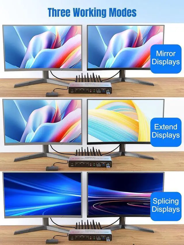 Ultra HD 4K@60Hz Dual Monitor KVM SwitchOur KVM supporting high resolution max up to 4K@60Hz. And support copy mode and extension mode (requires your computer to have 2 HDMI port) copy mode: two monitors output the same picture, extender mode: two monitors output different pictures