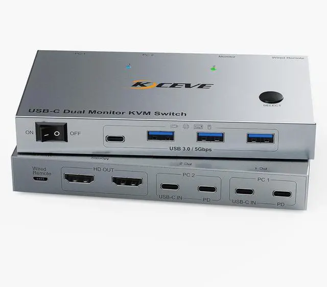 USB C KVM switch Dual MonitorKVM Docking Station effortlessly switches between 2 USB-C laptops while sharing 2 monitors and 4 USB peripherals. Transform your chaotic desk into a tidy platform. Work or game on either laptop without replugging cables. NOTE: For Windows, CPU needs to be 11th generation i5 and above. For Apple, System needs to be 11th generation and above.