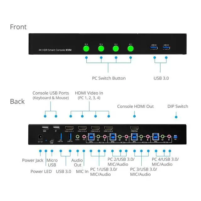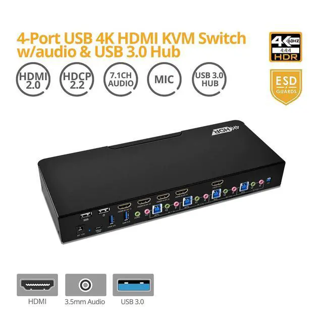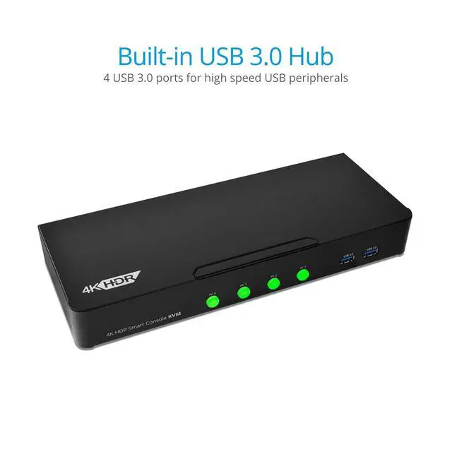 Supports independent HID keyboard & mouse ports4-Port USB 3.0 Hub is useful for using connected USB peripheral devices across all connected computer systemsSupports up to 7.1-channel, Dolby Digital Plus, DTS-HD and Dolby TrueHD audio