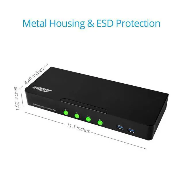 4 HDMI inputs allow for FOUR sources to be seamlessly switched between one display.4 additional USB 3.0 Ports offers expanded capabilities. Plug in your USB flash drive, external hard drive, and much more!Supports up to 4K @60Hz (4:4:4 8-bit), HDR 4K @60Hz (4:2:0 10-bit)