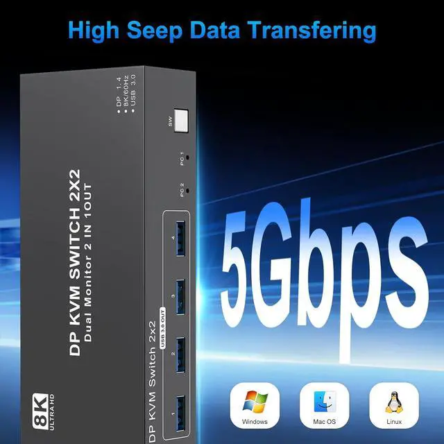 5Gbps Ultra-fast Transfer:DP USB 3.0 2 monitor kvm switch 2 computers transfer files in Seconds.This 2 computer 2 monitor kvm Switches supports ultra-fast USB 3.0 data transfer rates of up to 5Gb/s. With 4 USB3.0 ports for peripheral USB devices such as keyboard, mouse, printer/scanner, etc.Support wireless keyboard and mouse