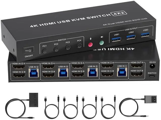 Ultra 4K@60Hz:This HDMl KVM switch 4 computers supports maximum resolution 4K@60Hz, compatiblewith 2K, 1080P@60Hz Or other lower resolutions. Kind reminder: Only when the signal source, monitor, and HDMl cable are supported 4K@60Hz Only then can the device output 4K@60Hz. The switch supportsadaptive EDlD.