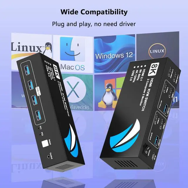 8K@60Hz HDMI KVM Switch 2 Monitors 2 Computers