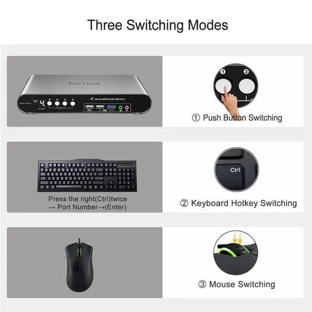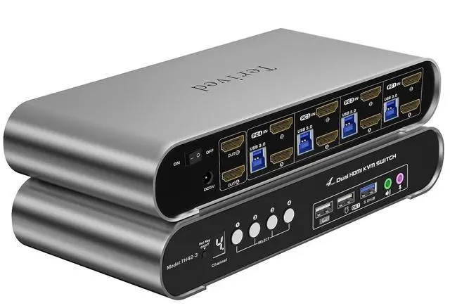 DUAL MONITOR SUPPORT Control up to four computers with two HDMI monitors, one keyboard, and one mouse for seamless multitasking in offices, studios, or trading setups.
