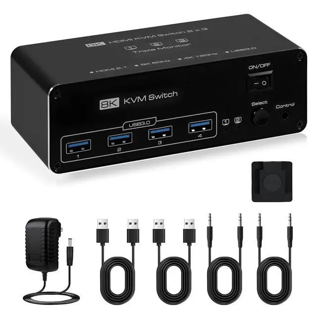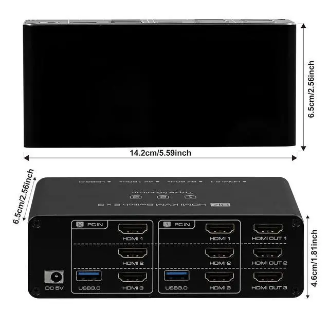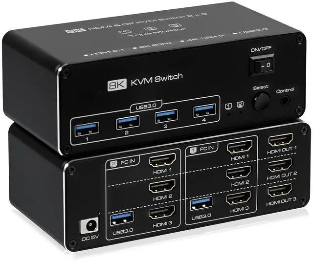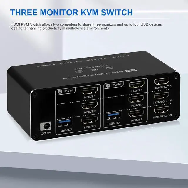 Dual Monitor KVM Switch: HDMI KVM Switch allows two computers to share three monitors and up to four USB devices, ideal for enhancing productivity in multi-device environments