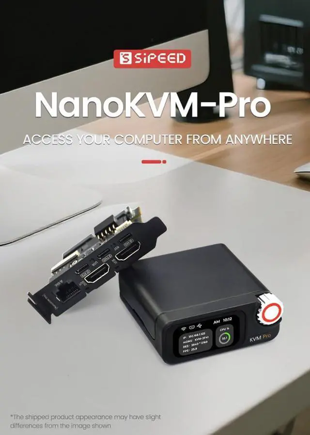 [Support Remote Mounting] Sipeed NanoKVM Pro IP-KVM Remote Control Server as a hardware extension for remote desktop solutions. It captures HDMI video, synchronizes visuals and keyboard/mouse operations over the network in real-time, and emulates input to control the host computer. This approach requires no host software, being entirely hardware driven. NanoKVM Pro enables BIOS-level control of the host. This proves particularly valuable in scenarios like remote power cycling, multi-system switching, BIOS configuration, and remote system deployment.
