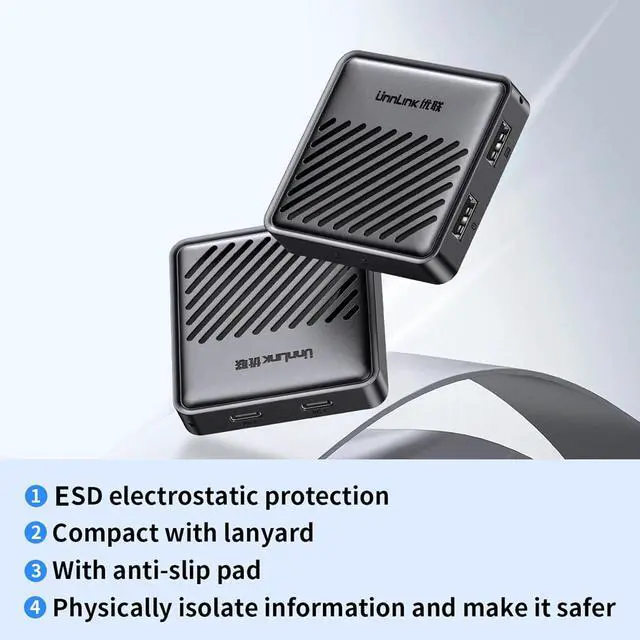 ESD Anti-Static Protection: Prevents host devices from suffering interface damage due to static electricity, and protects the USB-C Switch from chip or port failures caused by electrostatic discharge, thereby extending its service life.