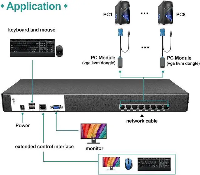8 ports Cat6 KVM Switch, MT-VIKI MT-9108MS VGA/HDMI+USB to CAT7 Dongles