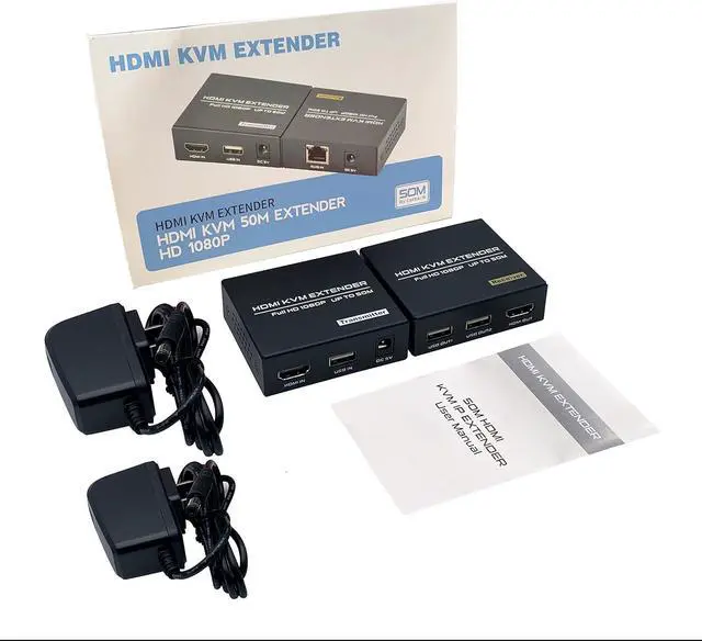 HDMI KVM 50m Extender - The HDMI KVM Extender can transmits HDMI signal up to 50m/165ft through a Cat5e/6 cable, no video loss with zero delay. Can be widely used in conference, financial securities, data control centers and other fields.