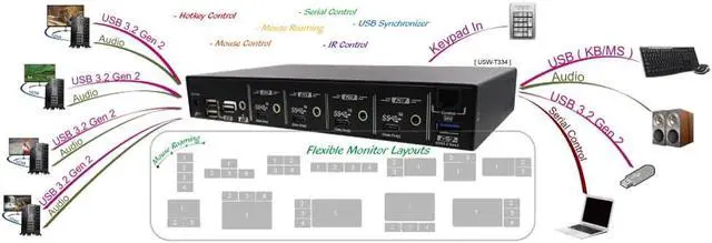 Hotkey, Keypad IN & Push Button Control Switch between computers using hotkeys, keypad IN, push buttons, or USB synchronizer for instant access.