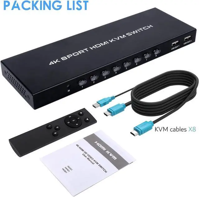 Package and InstructionsYou will receive 1 KVM switch, 8 HDMI cables, 1 IR remote control and 1 user manual. If you have any questions, please contact us and TCNEWCL will provide you with a solution.