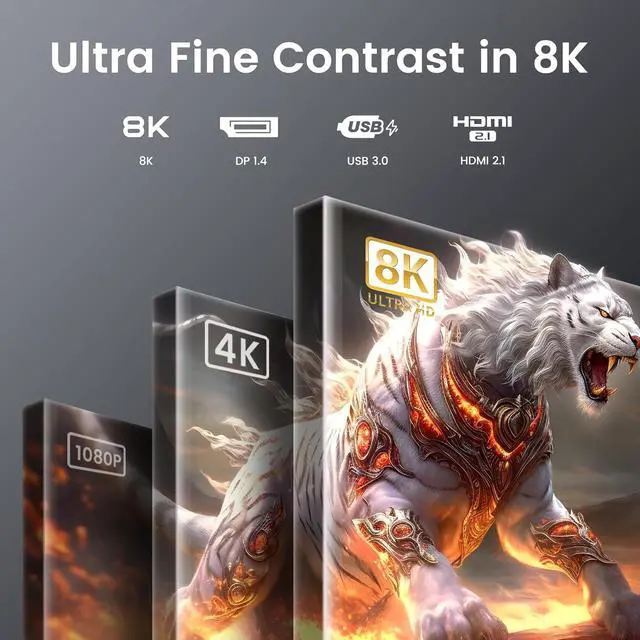 8K Ultra High Definition The dual monitor KVM switch delivers stunning 8K@60Hz and 4K@144Hz resolution, with backward compatibility for 4K@120Hz, 2K@144Hz, and 1080P@240Hz. The 2 computers 2 monitors switch supports connecting two different resolution sources and automatically recognizes the resolution when switching sources. (Note:If you want to realize 8K@60Hz, please make sure the signal source, monitor and cable support 8K.)