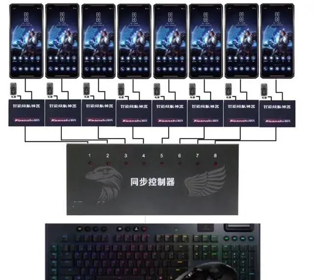 Set of USB keyboard and mouse synchronization control 8 computers, support mouse synchronization, switch across the screen.Used in Multiple Mode You.