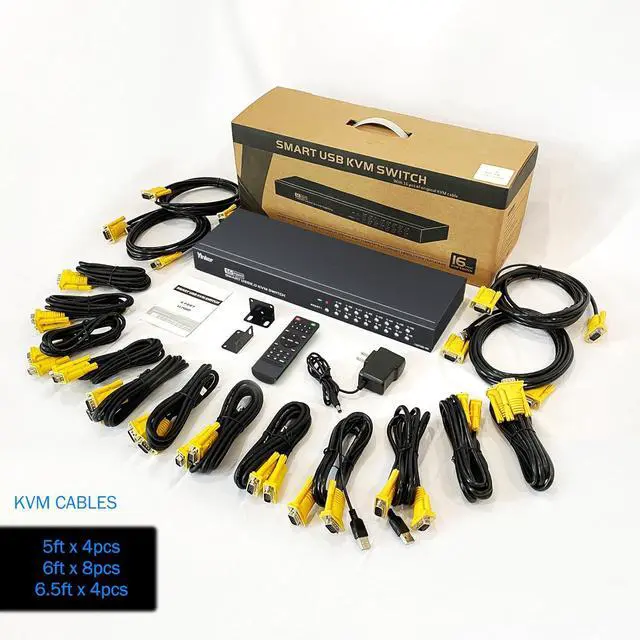 This 16 port KVM Switch VGA allows management of 16 PCs with 1 monitor keyboard and mouse. Plus with 3 USB2.0 hubs and VGA&USB 2-in-1 KVM Cable.