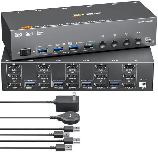 Plug & Play and Broad CompatibilityNo additional software or drivers required simply connect your DisplayPort+HDMI-equipped computers and monitor with this 4 port DP HDMI KVM switch for immediate cross-platform control. 3 Monitors KVM Switch to work with a wide array of operating systems,including Windows,MacOS,Chrome OS, and Linux on various computer model.